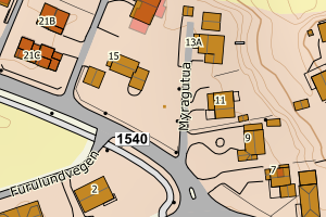 | Byggnr | Type | Endret dato | Bygningsstatus | Koordinater | FKB WMS |